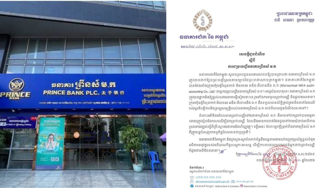 សេដ្ឋកិច្ច ធនាគារជាតិផ្អាកសេវាធនាគារព្រីនស៍ ក្រោយ លោក Chen Zhi ត្រូវចាប់ខ្លួនបញ្ជូនទៅចិន ធនាគារជាតិ នៃកម្ពុជា នៅថ... ស រតនៈខែមករា 8, 2026