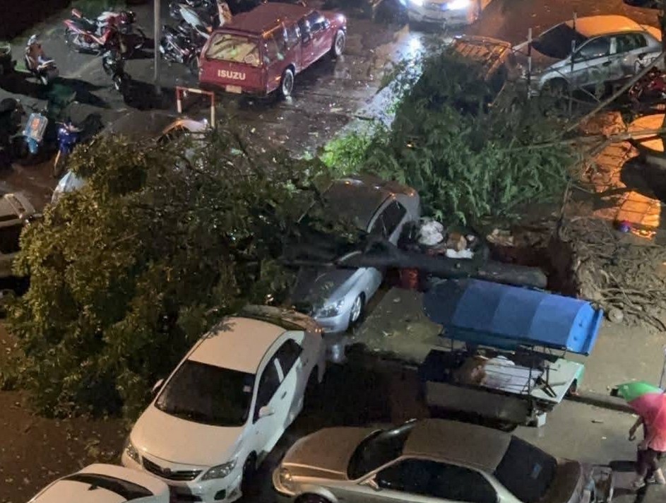 ចំណែក នៅស្រុក Pak Kret ខេត្ត Nonthaburi ដើមឈើដ៏ធំមួយដើមក៏បានរលំសង្កត់យានយន្ដជាច្រើនគ្រឿងផងដែរ បន្ទាប់ពីមានព្យុះភ្លៀងលាយឡំជាមួយខ្យល់បកយ៉ាងខ្លាំង៕
