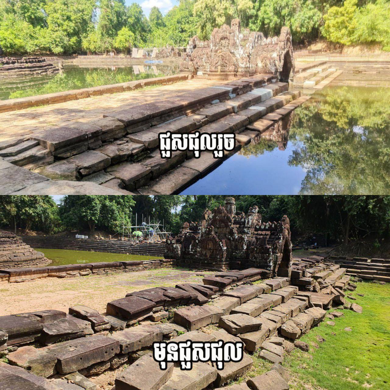 ក្រុមអ្នកជំនាញរបស់នាយកដ្ឋានអភិរក្សប្រាសាទនិងបុរាណវិទ្យា នៃអាជ្ញាធរជាតិអប្សរា បញ្ចប់ជួសជុលរចនាសម្ពន្ធទបង្ហូរទឹក នៅទិសខាងលិចនៃប្រាសាទនាគព័ន្ធដោយជោគជ័យ។
