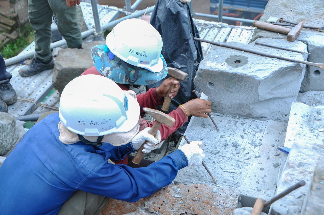 ចំណែកលោក ថៃ យ៉ាម៉ង់ ស្ថាបត្យករនៃអាជ្ញាធរជាតិអប្សរា បានឱ្យដឹងថា ក្នុងគម្រោងការងារនេះ អ្នកជំនាញខ្មែរបានចូលរួមបំពេញការងារ​មួយចំនួន ដូចជាធ្វើសម្រង់ប្លង់មុន និងក្រោយជួសជុល​ ស្វែងរកថ្មដែលបាត់ ឬជ្រុះរាយប៉ាយមកផ្គុំឡើងវិញ។ល។ បើតាមលោក យ៉ាម៉ង់ អ្នកជំនាញខ្មែរ​បានផ្គុំថ្មជាង២០០ដុំរួចហើយ និងព្យាយាមរកថ្ម និងផ្គុំនៅកន្លែងដែលបាត់នោះឡើងវិញ។