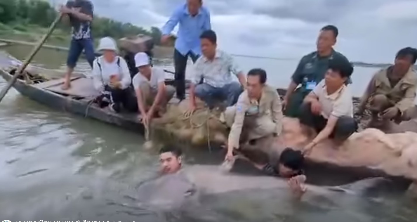 ក្រោយពីកំណត់អត្តសញ្ញាណរួច ក្រុមការងារ និងមន្ត្រីជំនាញជលផល បានលែងត្រីរាជនេះ ចូលក្នុងទន្លេមេគង្គវិញ៕