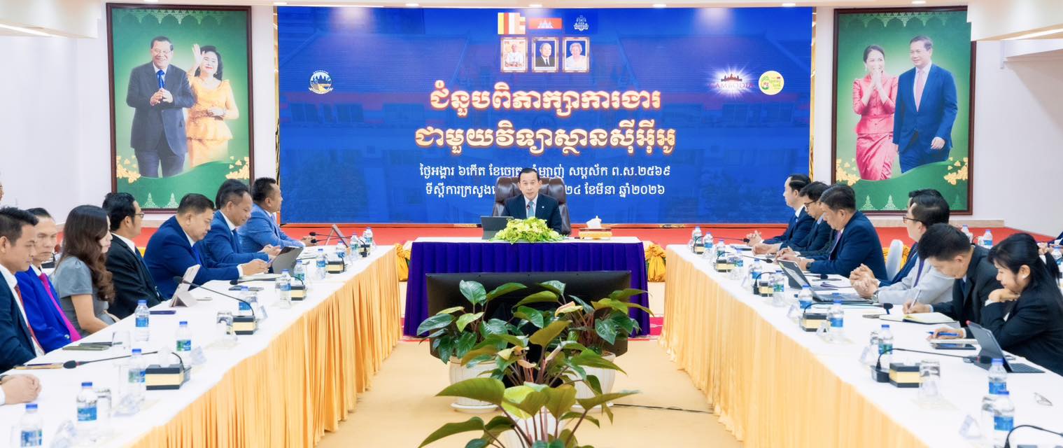 ឯកឧត្តម ហួត ហាក់ រដ្ឋមន្ត្រីក្រសួងទេសចរណ៍ បានអញ្ជើញទទួលជួបពិភាក្សាការងារជាមួយវិទ្យាស្ថានស៊ីអ៉ីអូ ដឹកនាំដោយ ឯកឧត្តមបណ្ឌិត អោម សេងបូរ៉ា ប្រធានក្រុមប្រឹក្សាភិបាល នៃវិទ្យាស្ថានស៊ីអ៊ីអូ ព្រមទាំងសហការីសរុបចំនួន ៧០នាក់ ក្នុងគោលបំណងពង្រឹងកិច្ចសហប្រតិបត្តិការរវាងក្រសួងទេសចរណ៍ និងវិទ្យាស្ថានស៊ីអ៊ីអូ ក្នុងការអភិវឌ្ឍធនធានមនុស្ស និងការចូលរួមលើកកម្ពស់វិស័យទេសចរណ៍នៅកម្ពុជា នាទីស្តីការក្រសួងទេសចរណ៍ ថ្ងៃទី២៤ ខែមីនា ឆ្នាំ២០២៦។