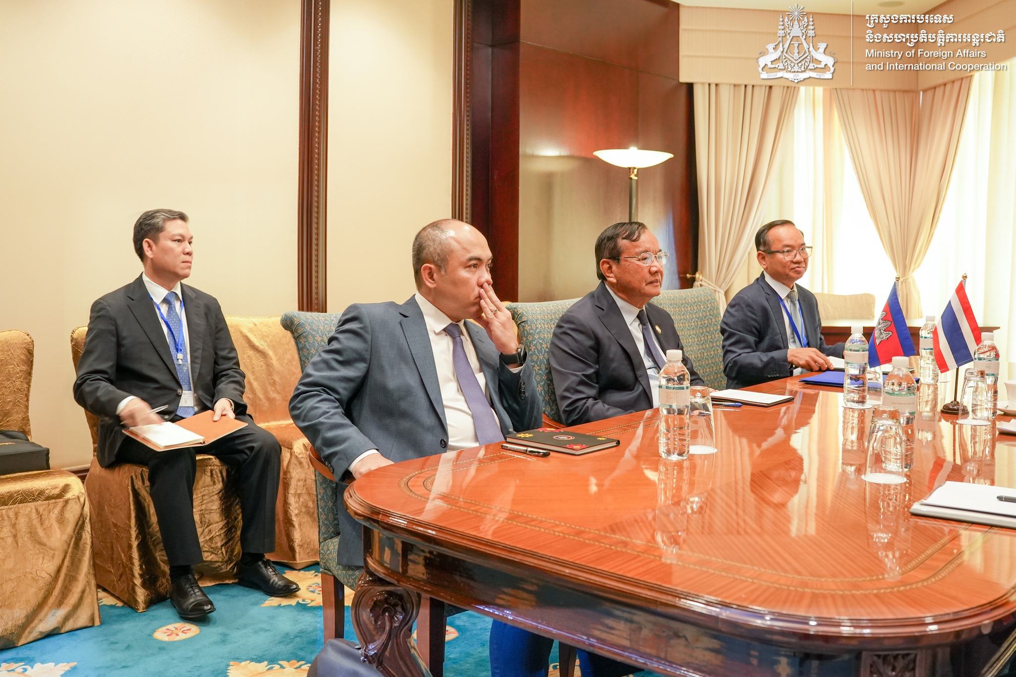 នៅថ្ងៃទី២៧ ខែមេសា ឆ្នាំ២០២៦ ក្នុងឱកាសអញ្ជើញចូលរួមកិច្ចប្រជុំរដ្ឋមន្រ្តីការបរទេសអាស៊ាន-សហភាពអឺរ៉ុប ឯកឧត្តមឧបនាយករដ្ឋមន្រ្តី ប្រាក់ សុខុន រដ្ឋមន្រ្តីការបរទេស និងសហប្រតិបត្តិការអន្តរជាតិ បានជួបទ្វេភាគីជាមួយឯកឧត្តម Sihasak Phuangketkeow ឧបនាយករដ្ឋមន្រ្តី រដ្ឋមន្រ្តីការបរទេស នៃព្រះរាជាណាចក្រថៃ។ ភាគីទាំងពីរបានពិភាក្សាត្រង់ទៅត្រង់មកលើស្ថានភាពព្រំដែន រួមទាំងវិធានការកសាងទំនុកចិត្តនានា និងលើទិដ្ឋភាពដ៏ទូលំទូលាយនៃទំនាក់ទំនងការទូតរវាងប្រទេសទាំងពីរ។